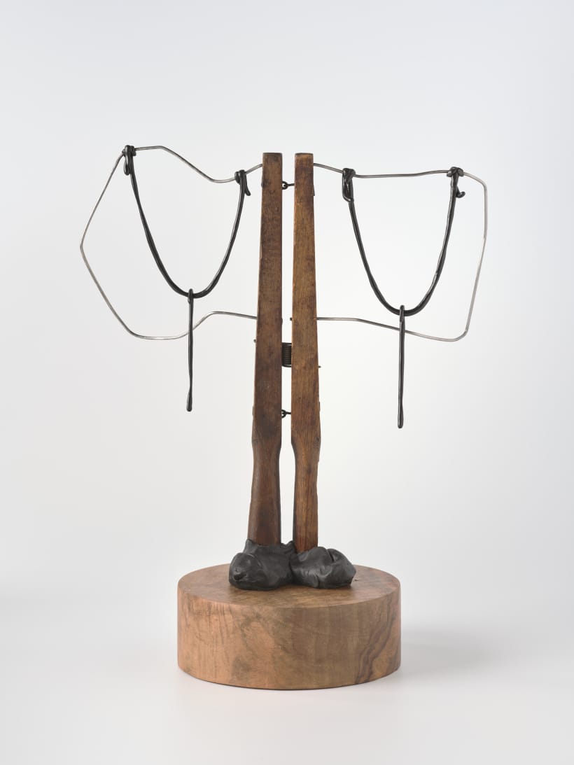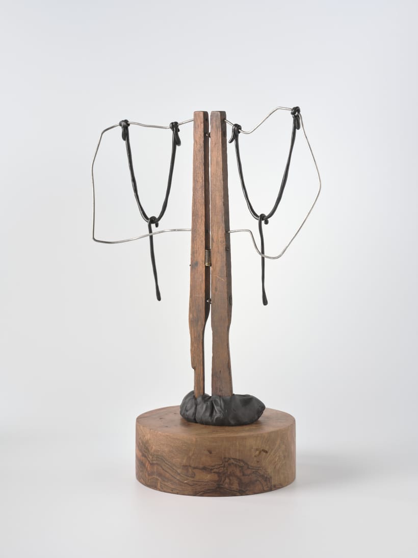 found object, apoxie, walnut base