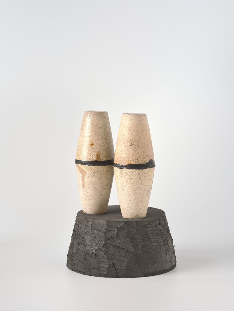 found assay cups, ink, plater, graphite, wax, foam base