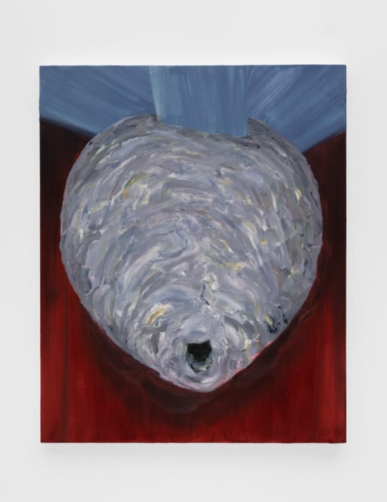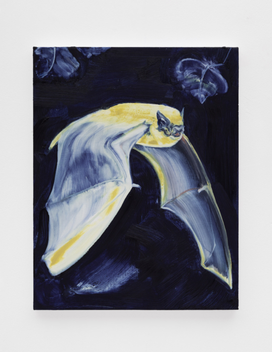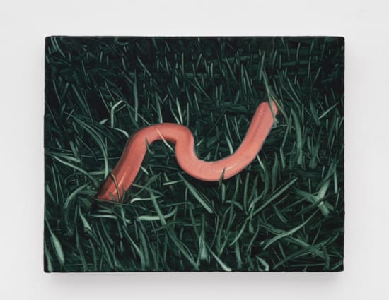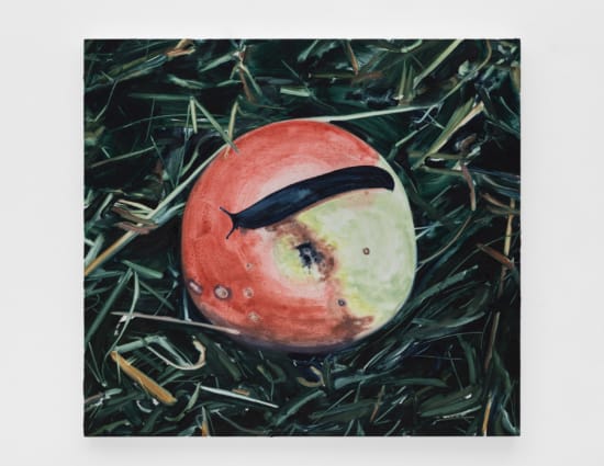 I see too, in Findlay’s paintings, a tenderness. Fecund but fleeting subjects appear in a palette that hints of a rising sun. The promise of a bursting blossom; a fat worm on cut wet grass; red fruit ravaged by hungry bugs; wing, plume, and incandescent rot. I feel here the ephemerality that both painters and poets have long ached to capture, that other negative—the “negative capability”—which Keats experiences attempting to cage a nightingale with rhyme and metre. The felt truth of his project has outlived its poetic cliché: meaning found only in beauty, and beauty only in transient uncertainty.[i] The life cycle may be long, but oil paintings will also have their day in the mud; perhaps this is itself a wonderful reason, these pieces suggest, for us to continue making them.